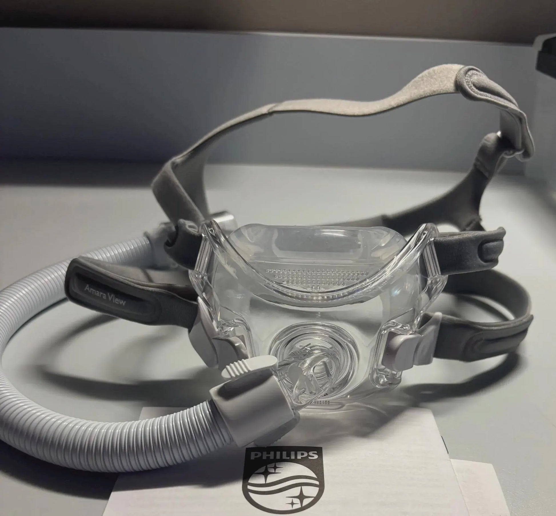 New factory sealed Respironics Amara View Small full face mask. Comes complete with frame, Small full face cushion, short hose and headgear. Returns/Refunds/Exchanges on opened masks are not allowed-please make sure you are purchasing the correct item you need.